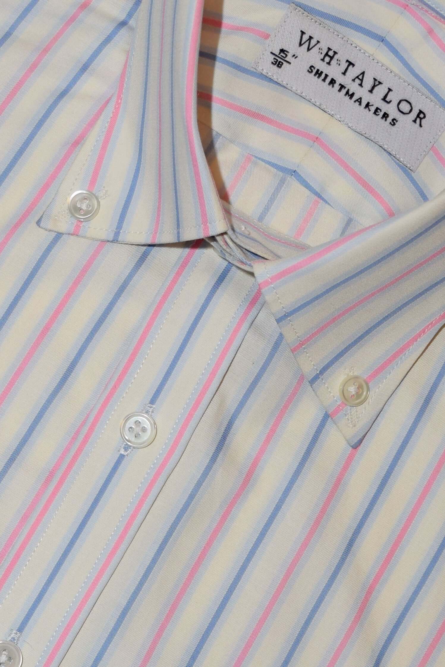 この興味深いストライプは、通常の無地のオックスフォード生地とは違います。