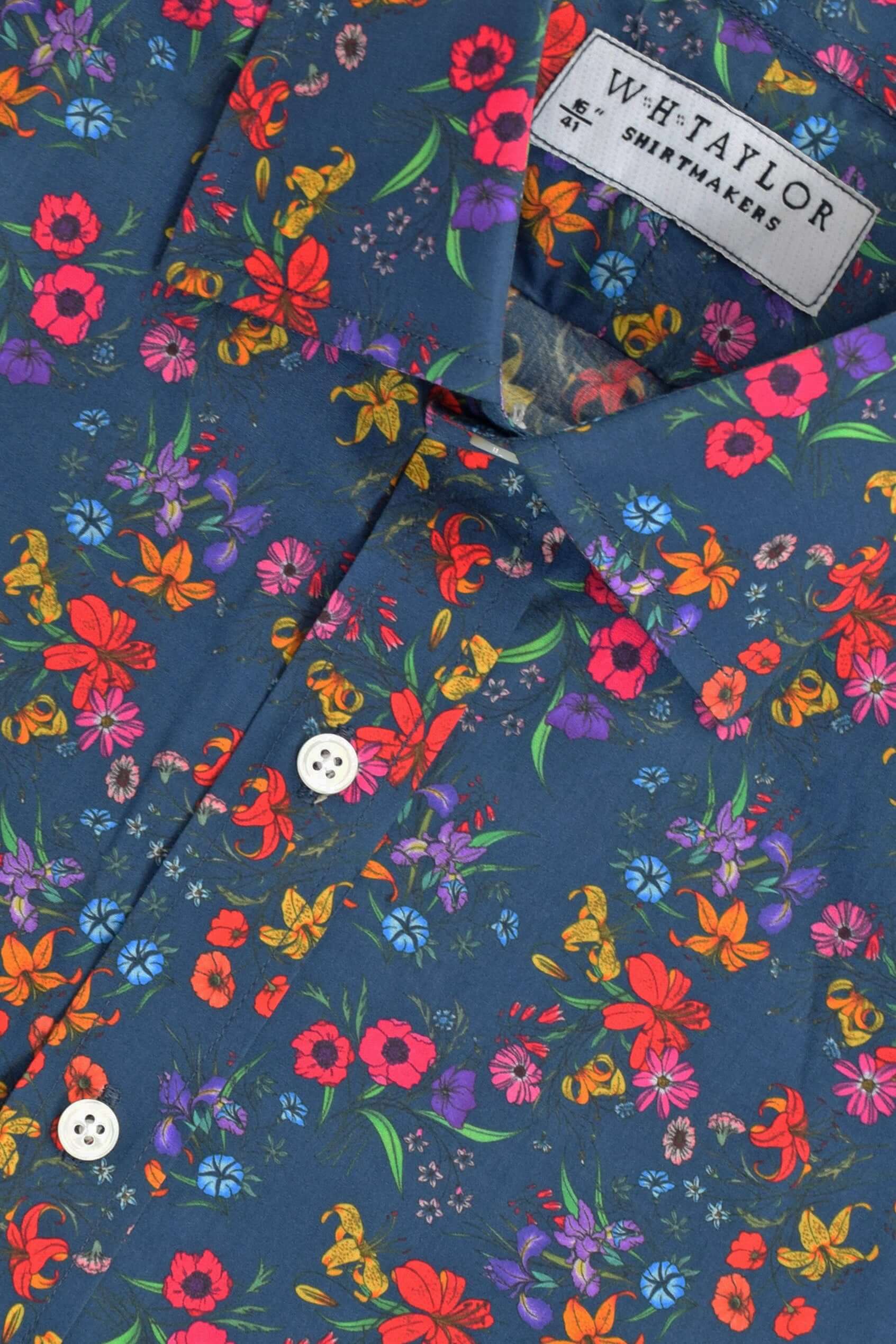 The Navy Floral Pattern Men's Bespoke Shirt offers a refined blend of classic elegance and modern design. Tailored meticulously to your measurements, its subtle floral pattern on a deep navy background conveys effortless sophistication. Ideal for the discerning man seeking timeless style with a touch of distinction.
